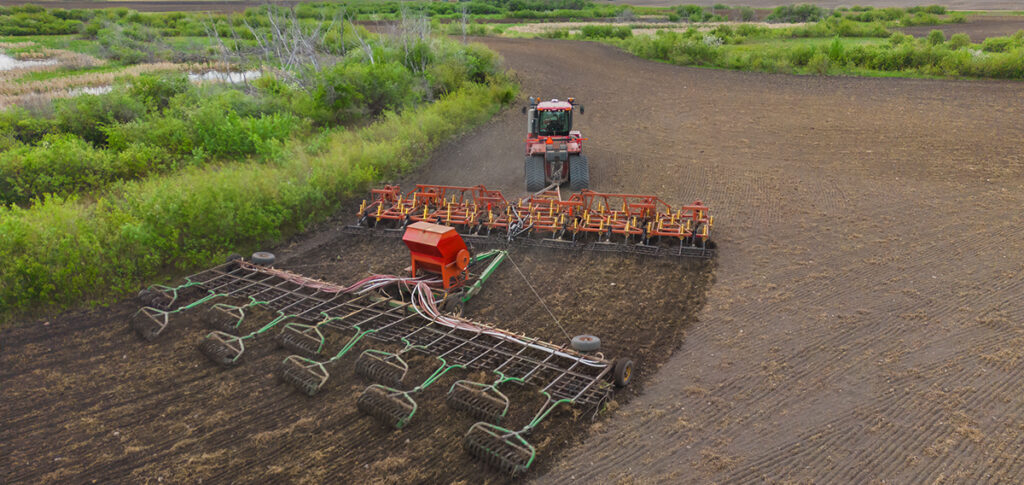 No-till leaves the soil entirely undisturbed from harvest until the next crop’s planting. Seeds are planted directly through stubble from the previous crop, with more than 30% of the surface cover remaining. The use of minimal disturbance tools, such as a knife-style opener on seeding equipment, may be advantageous in no-till systems when residue management is necessary.